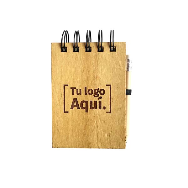 Set de Anotador tamaño A7 mini fabricado con tapas de madera terciada laqueada.