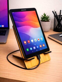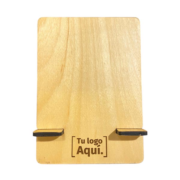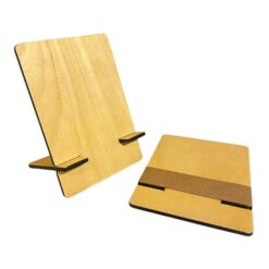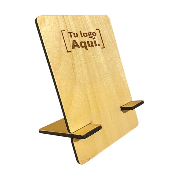 Soporte para apoyar tablet / ipad de 21 x 15 cm liviano y encastrable realizado en madera enchapada 6mm de espesor, con laqueado protector y packaging de cartón kraft.